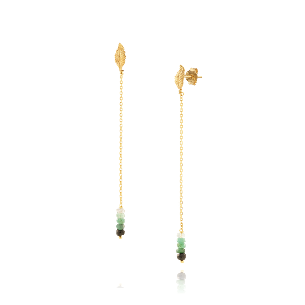 Long earrings with dégradé emeralds on the endings.