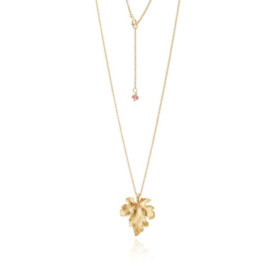 Colar com pendente folha de videira e pormenor delicado nas costas. Peça simples cheia de presença.